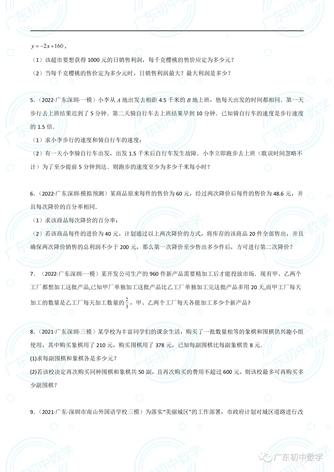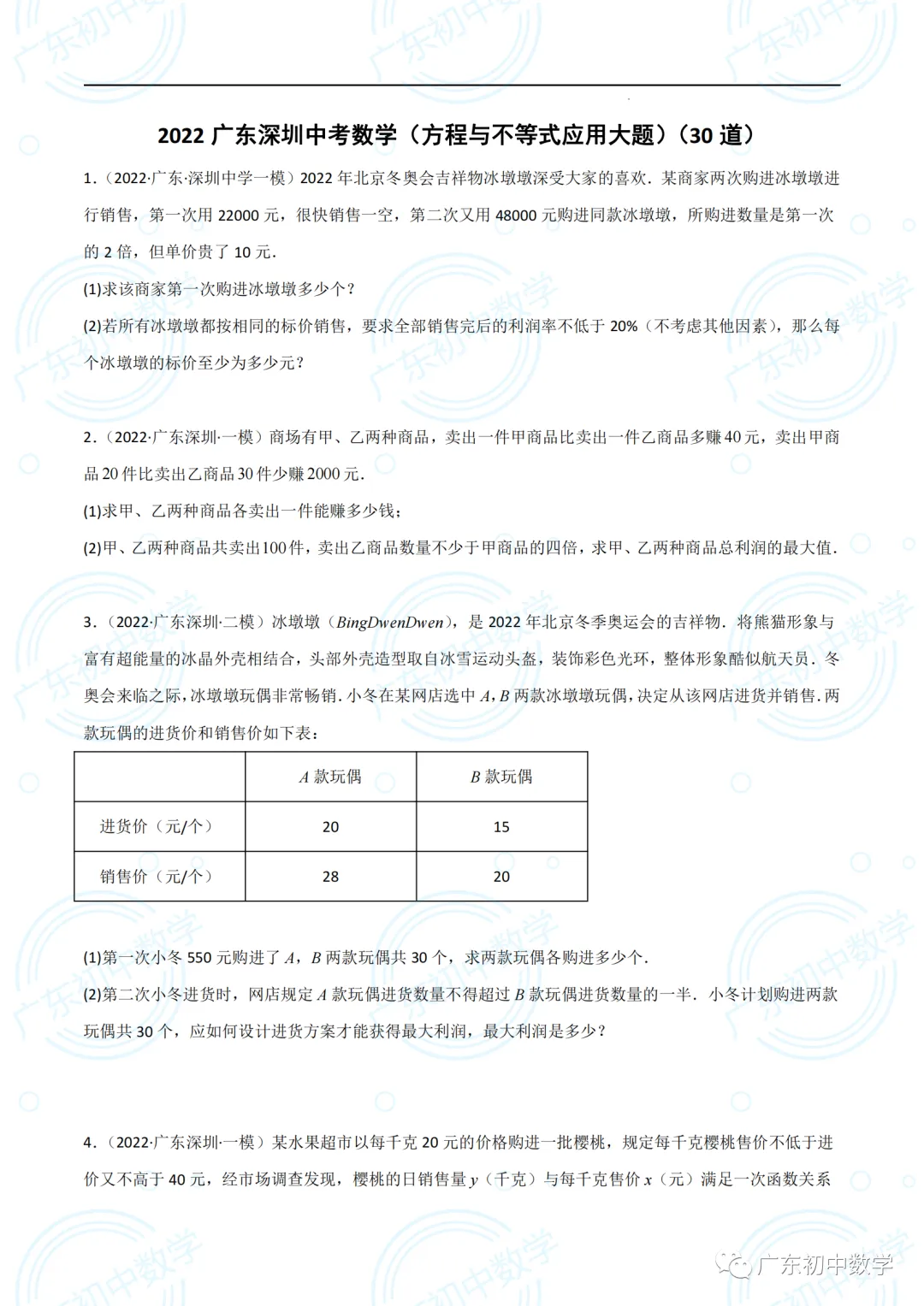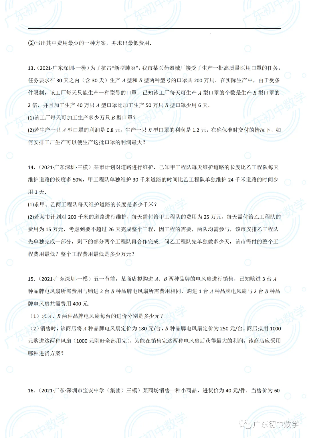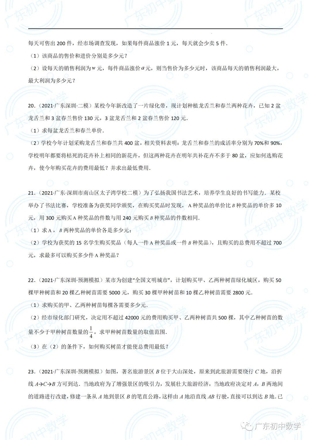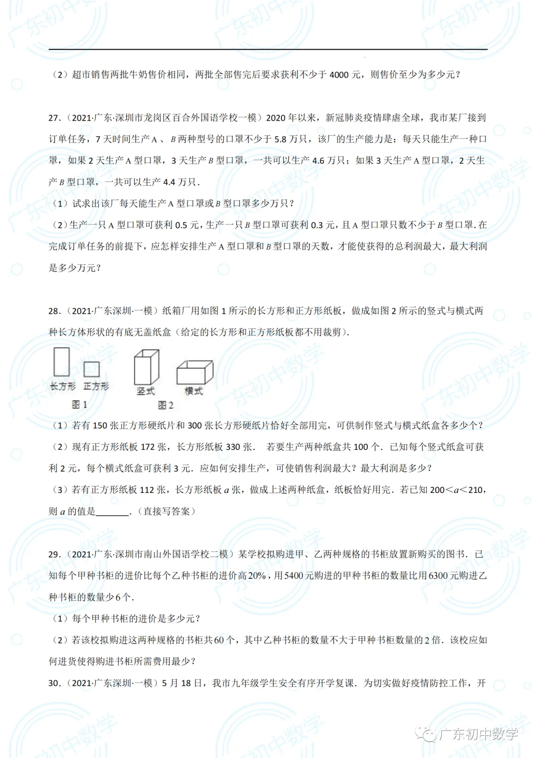 2022广东深圳中考数学(方程与不等式应用大题)(30道)(原卷版).pdf